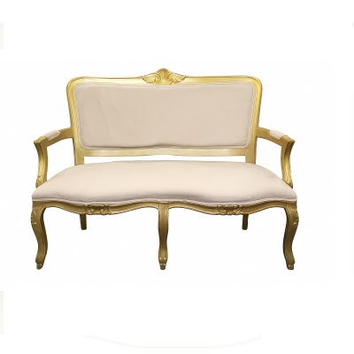 Namoradeira Luiz XV Dourada Entalha Bege (Neutra)